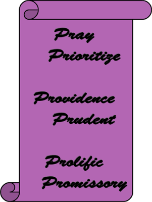 Alliteration works for me if I capitalize on someone else’s idea, or the words evolve from an organic depth of my soul. If I need to hurt my brain thinking about it, alliteration doesn’t work for me.These “Pr-” words were jotted in an idea file, but I failed to list the original source. I apologize. As I read down the list, my mind applied the words to writing.The first two, pray and prioritize, don’t need elaboration. They ought to come intrinsically, and apply to tasks other than writing.