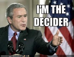 US President #43 was mocked for his insistence, "I'm the decider!" but I think he was on to something.