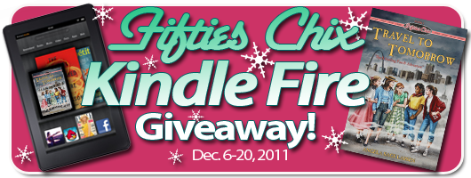 I'm so excited! Fifties Chix is doing yet another giveaway! And it's a big 'un. Find out how you can win a Kindle Fire in time for Christmas by clicking here (the winner will also get an autographed copy of Fifties Chix: Travel to Tomorrow sent to a charity of their choice). Best wishes!