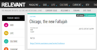 Calling anything "the new Fallujah" is just lazy and irresponsible. It's like when talking heads compare George W. or Obama to Hitler. It's just ridiculous, pseudo-journalism. No mercenaries are being burn and mutilated and finally hung from bridges in Chicago; no one is baking people in their homes with white phosphorus in Chicago; no one is poisoning the soil with depleted (or slightly enriched uranium) in Chicago, and, thank God the cancer and birth defect rates in Chicago are not cripplin...