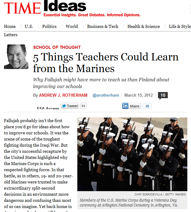 [Andrew J. Rotherham] "Fallujah probably isn't the first place you'd go for ideas about how to improve our schools. It was the scene of some of the toughest fighting during the Iraqi War. But the city's successful recapture by the United States highlighted why the Marines Corps is such a respected fighting force."
