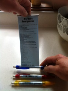 Now there are pens available for “We Were Emergencies” and “In Landscape.”