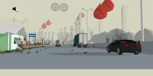 Image from Nigel Axon‘s computer generated 3D tour of Baytown, TX and the poem “My Town.”