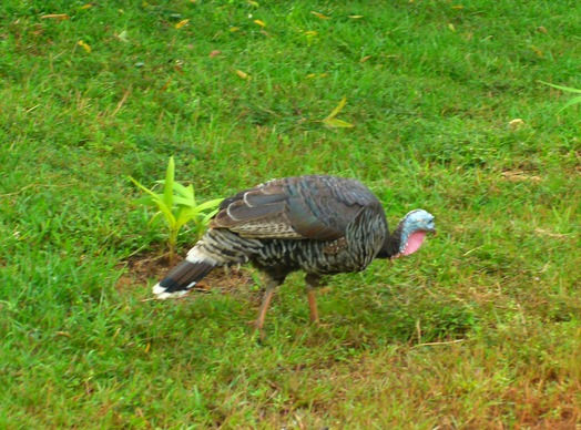At any rate, here is one of our landlord's foreign chickens parading around this morning. Although they look like US turkeys (although not like butterball or other factory models), these will still be around next week. They have a longer lifespan here. Must be the weather or something in the water. At any rate, this one does not look stressed out.