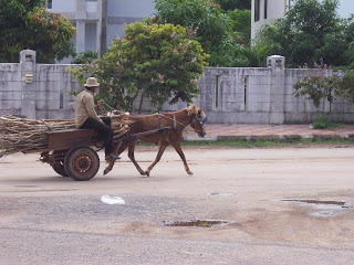 It's important to get around in style. When I was downtown the other day, just across the street from the Kampot Province Economic Affairs Office, I took this photo. You often see these pony carts at the market. Along with motorized transport, these carts, and some pulled by water buffalo are still very much in use.An ordinary trip downtown can provide a fair amount of inspiration .