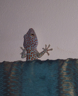 Sunday was a lovely rainy morning. It is easy to get my writing done on a rainy day. It is cool then and there is something about the rain that makes my thoughts seem to go deeper. Perhaps it is just that I am less distracted by things outside the window.Thanks to those who responded to the story about the creative assistant. Pat confirmed that it was a Tokay gecko. I have to find out if this one is a mongo Tokay or just on the large size of normal. Uncle Steve reminded me that Carlos Castenada was taught divination with lizards and suggested that I not limit the new friend to the duties of an assistant. That merits investigation as well.
