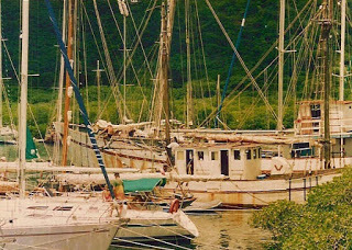 Jammed into the mangroves in Carriacou for a hurricaneThat was relatively easy. As you can see by the photo above, at times we were all rather cheek and jowl. That provided a ready source of story material for sure. (There was, however, a rather mobile hurricane party in the mangroves that didn't make the book... maybe another time.)