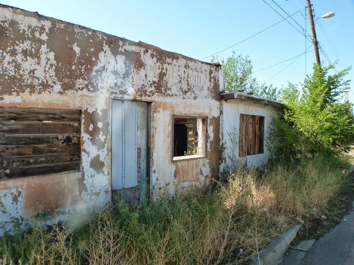 I took this set of photos in rural New Mexico. Several are from small mining towns in the Silver City area, where the Santa Rita and Tyrone mines have a long history of being driving forces in the local economy. Unfortunately, mining is a boom and bust proposition, which likely means more dreams and more failures than in other places. The boom and bust provide the attraction and the potential for tragedy/ The dreams had to be phenomenal...of wealth, of even better buildings for growing families. And a bust time meant few had the money to take over properties that had been abandoned. By the time the next boom arrived, brought on by a rise in copper prices, it was time for new buildings and new dreams. The old ones aren't fixed. Why live in the shell of a ruined life when the future beckons?