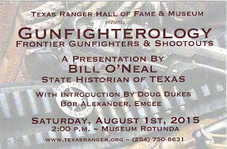 That's the name of Bill O'Neal's upcoming presentation at the Texas Ranger Hall of Fame and Museum. We'll be there!