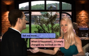 "No, last week I went with Fabio on a romantic gondola ride in Virtual Venice. Then Pierre and I had a virtual dinner at the top of the Virtual Eiffel Tower. Next week I'm meeting Alexander for virtual snorkeling in the Virtual Greek Islands. I have a fabulous bathing suit picked out."