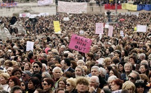 Finally, the women have had enough! Millions of grandmothers, mothers, and daughters are marching in the streets of Rome for Berlusconi to resign. Oh, how I would have love to be there, even if it meant I had to go with my mother, who, by the way, has a lot to say on this topic.