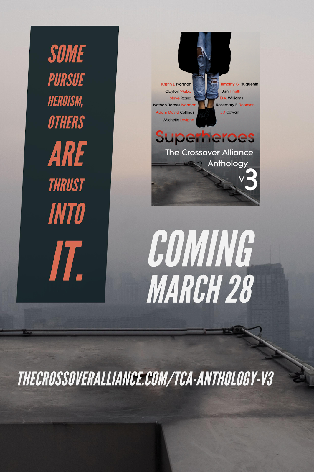 The Crossover Alliance's third anthology deals with superheroes!Coming your way March 28. Pre-order your digital edition now and save some cash, and get your copy via email on release day! Click this link here.