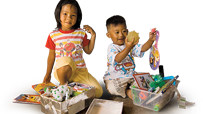 Pack up a shoe box -- I prefer one of those shoebox-sized plastic storage boxes, because it's sturdier and the kids can use them for a long time afterward