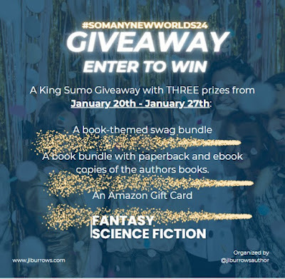 This giveaway is about visiting as many book worlds as you can in this new year2024! So join us as we celebrate writing alongside you, our awesome readers!Win books, swag, and MONEY!