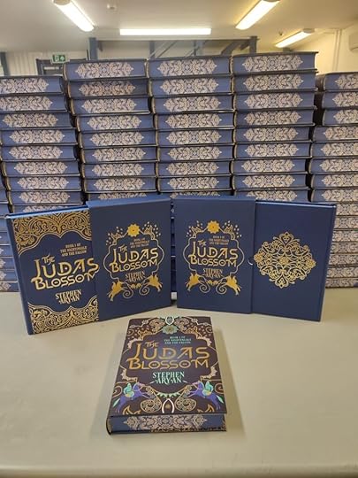 Tuesday, I was at the Broken Binding fulfilment centre, signing 1,000 special editions of the hardback of The Judas Blossom. They are selling fast, so if you want a copy I suggest you order it ASAP. The slipcase ones went in under 5 minutes.