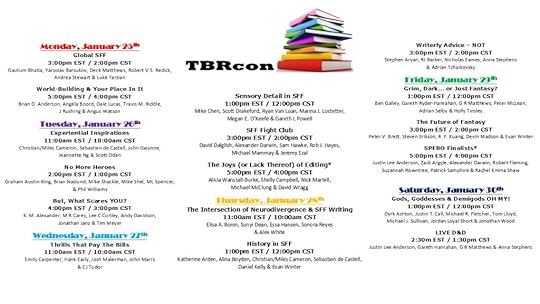 Next week, starting on Monday 25th January and running through to will be TBR (to be read) convention 21, a totally FREE online science fiction and fantasy convention with over dozens of authors taking part. There is a live D and D session and also book giveaways.