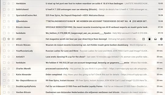 Dit varieert van bitcoin zooi, casino’s, Russische dames die iets van mij willen en uiteraard Jort Kelder die een geheim met mij wil delen waar de banken in Nederland helemaal niet blij mee zijn!