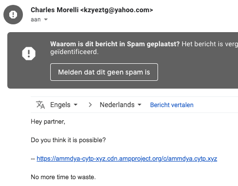 Terwijl ik dit artikel schrijf bekijk ik de spam berichten en kom eentje tegen met mijn e-mailadres (voor de @) tegen in het domein van de afzender.