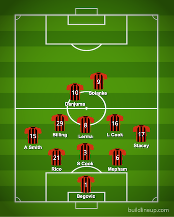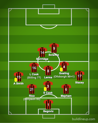AFCB Subs: Begovic, Stacey, S Cook, Zemura, Lerma, Kilkenny, Anthony