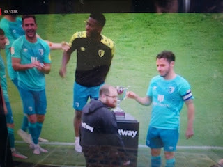 Anderson is caught offside. Bournemouth wins their first trophy since winning the Championship in 2015.