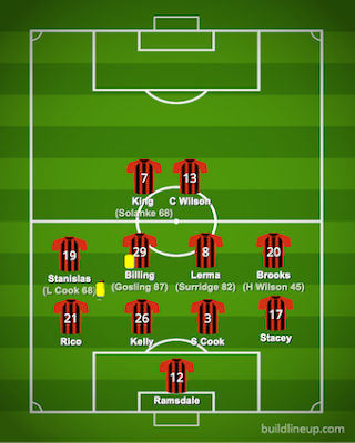 AFCB Ratings: Ramsdale 10, Stacey 6, S Cook 6, Kelly 7, Rico 6, Brooks 4, Billing 5, Lerma 5, Stanislas 5, King 5, C Wilson 5