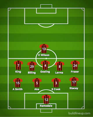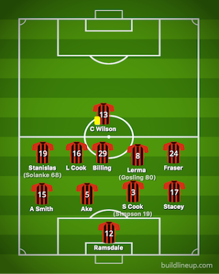 Ramsdale 7, Stacey 6, Simpson 5, Aké 8, A Smith 6, Fraser 6, Lerma 7, Billing 7, L Cook 7, Stanislas 5, C Wilson 6