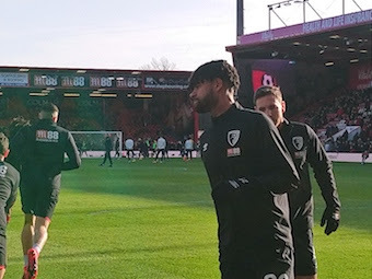 Ramsdale runs off to greet the North Stand crowd.Bournemouth set up as a 4-3-3 formation with Simon Francis keeping Steve Cook out of the team at centre-back, Diego Rico coming back in at left back and Philip Billing partnering, Gosling and Lerma in midfield, while Adam Smith was also back in the team. The bench also saw Junior Stanislas back available for selection.
