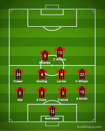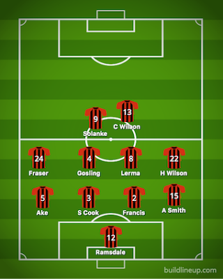 Alex Dobre has also been scoring regular for the U21s and while youth is not always quickly rewarded at AFCB, Howe might just have to look at playing young strikers while King is out. It has to be better than playing Ryan Fraser up front. But if Callum Wilson and Harry Wilson don't manage to score you are left looking around wondering where the goals will come from. A few direct runs from Dan Gosling make him a better choice than a Philip Billing, struggling with back issue, in my book and for however much we love the passion and roughness of Jefferson Lerma, it is about time he squared his aim a little better in front of goal.