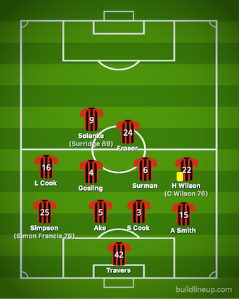 AFCB Subs: 12 Ramsdale, 2 Francis, 60 Genesini,
