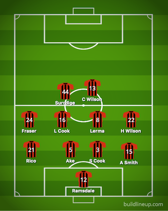 that can actually raise their game in a dog fight?What I couldn't work out was even with the players Eddie picked, Nathan Aké was playing at left-back which isn't his strongest position. Okay, we had Adam Smith in the right back role which was fine. But Simon Francis was the preferred centre-back with Steve Cook, rather than Aké. Howe could have played Francis at right back or better still left him on the bench. He had a perfectly good left-back in Diego Rico, who could have started, freeing up Aké to play in his best position.
