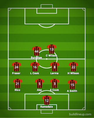 But let's have a look at some positives. Aaron Ramsdale could well be back in goal. Simon Francis might well be benched and Diego Rico brought back in to the starting 11, but we were told yesterday that Josh King would not return. If Danjuma or Stanislas are also back then their may be some attacking options on the bench as well, but Dobre will probably get the place. Eddie Howe has had a week to work with the players who are fit and he'll have been trying to get the message across I hope that it is, now or never. It might just be worth giving Sam Surridge a start over Dominic Solanke as Surridge should be confident and excited about making a start. It could also be time for Lewis Cook in central midfield, while Lloyd Kelly has been training this week and could be in the squad.