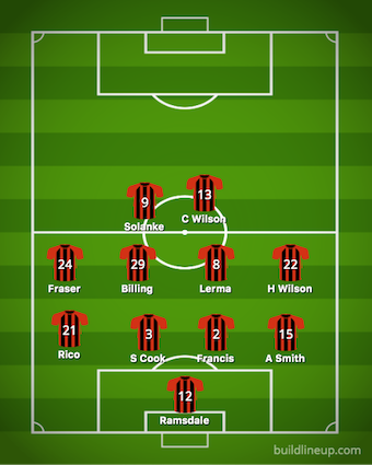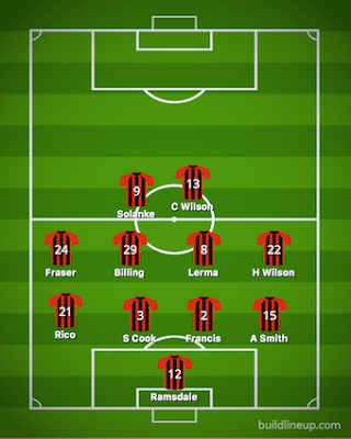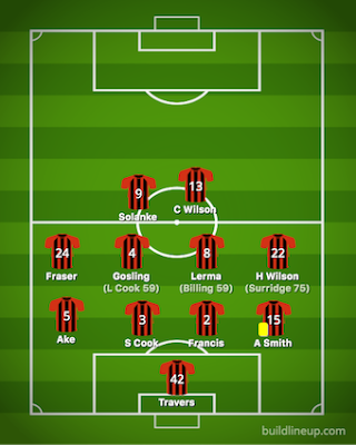 Bournemouth had Adam Smith and Nathan Aké back from Injury in defence and Mark Travers got a start in goal over Aaron Ramsdale, who had a hamstring problem. Billing was moved to the bench, despite scoring two goals in the FA Cup last week.