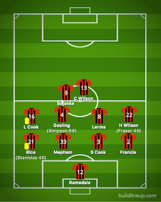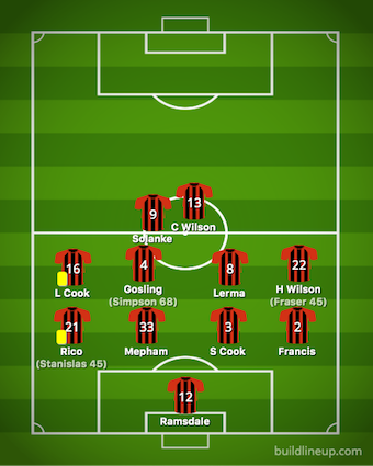 AFCB Subs: Boruc, Surman, Stanislas, Fraser, Simpson, Billing, DobreAFCB RatingsRamsdale 4, Francis 3, S Cook 3, Mepham 3, Rico 3, H Wilson 2, Lerma 3, Gosling 3, L Cook 5, Solanke 3, C Wilson 3