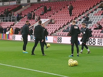 The teams come onto the pitch.Eddie Howe named a stronger side than expected with Billing, Solanke Harry Wilson and Ryan Fraser all getting starts. Callum Wilson and Sam Surridge were on the bench along with a well strapped up Jefferson Lerma.