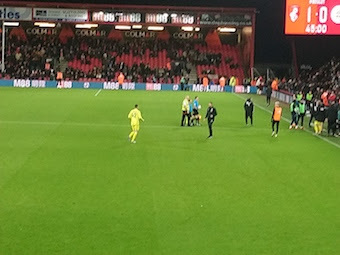 Bournemouth survive a late scare at the end of the first half to go in 1-0 up.Second half