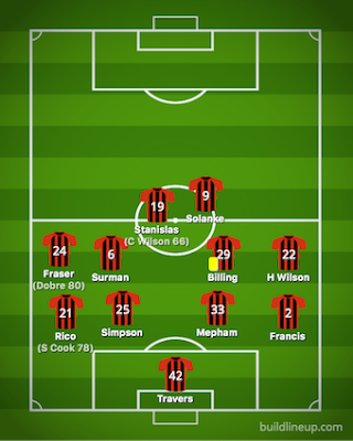 AFCB Ratings: Travers 6, Francis 6, Mepham 6, Simpson 6, Rico 7, H Wilson 6, Surman 6, Billing 7, Fraser 6, Stanislas 5, Solanke 6.