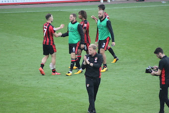 Bournemouth take a breather. The movement is amazing goal with Stanislas moving the ball well and Lewis Cook drives a cross into the six-yard box and Solanke makes the run to make it 0-1on 25 minutes.