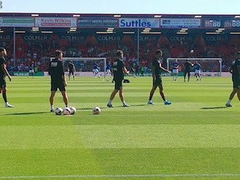 Lewis Cook then made an amazing pass to Solanke on the break, but the Bournemouth forward over hits the shot when he had the goal gaping on 23 minutes. Steve Fletcher hobbles off and Jacob Brown replaces him. A free kick given away by Rico is headed wide by Nick Powell. Surridge wins a free kick in a promising area. Stanislas puts it wide around the wall, but has the corner. Lewis Cook looks the most alert of AFCB's players. It's all a bit rushed for Bournemouth. They don't look comfortable.