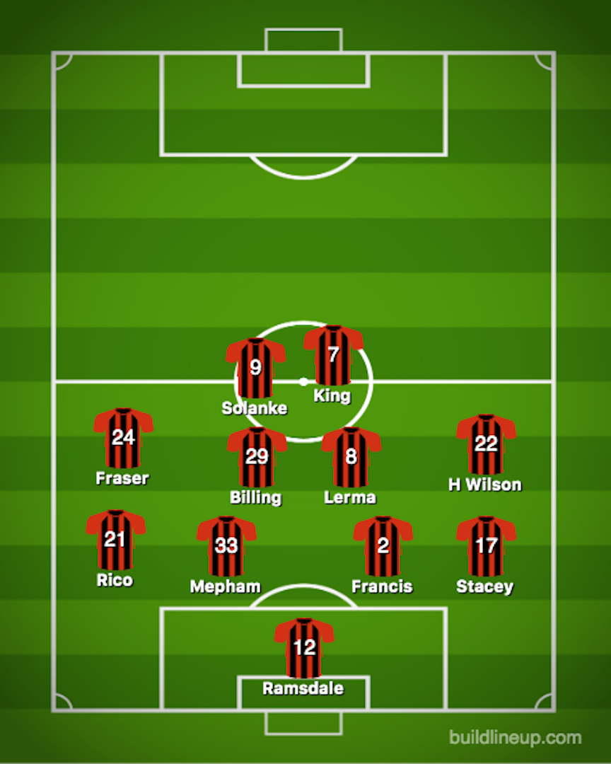 It may be that the game against Chelsea saw players that were fitter than any of the recent sides that Howe has been able to put out. Lewis Cook, Simon Francis and Dan Gosling all had a few matches to get back into the swing of things and weren't introduced cold. Eddie Howe also said early in the week that King was in line for a return, and he'd only say that if he was really confident that King was ready to step straight back in.