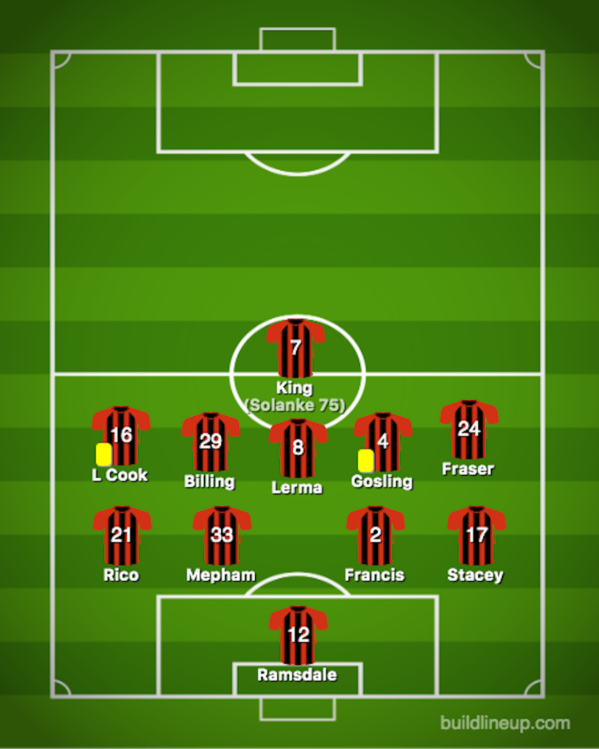 AFCB Ratings: Ramsdale 10, Stacey 7, Francis 8, Mepham 6, Rico 7, Gosling 8, L Cook 7, Billing 7, Lerma 8, Fraser 8, King 8