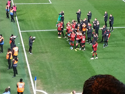 What a day! Bournemouth's players celebrate a terrific win.This was a most unexpected win for the Cherries, but it was celebrated widely with Dan Gosling punching the air, after a long wait for VAR to rule a goal in Bournemouth's favour. AFCB relied on man of the match for me, Aaron Ramsdale to make some miraculous saves in both halves to win the game, while Josh King made a superb return before going off injured in the second half. This win will more than lift spirits at Bournemouth, it will give the players renewed confidence to challenge higher up the league. They've beaten one of the top six clubs and can build from here.