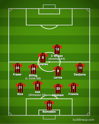 Billing 4 (L Cook 4), Fraser 5, Solanke 3, Wilson 3 (Gosling 5)
