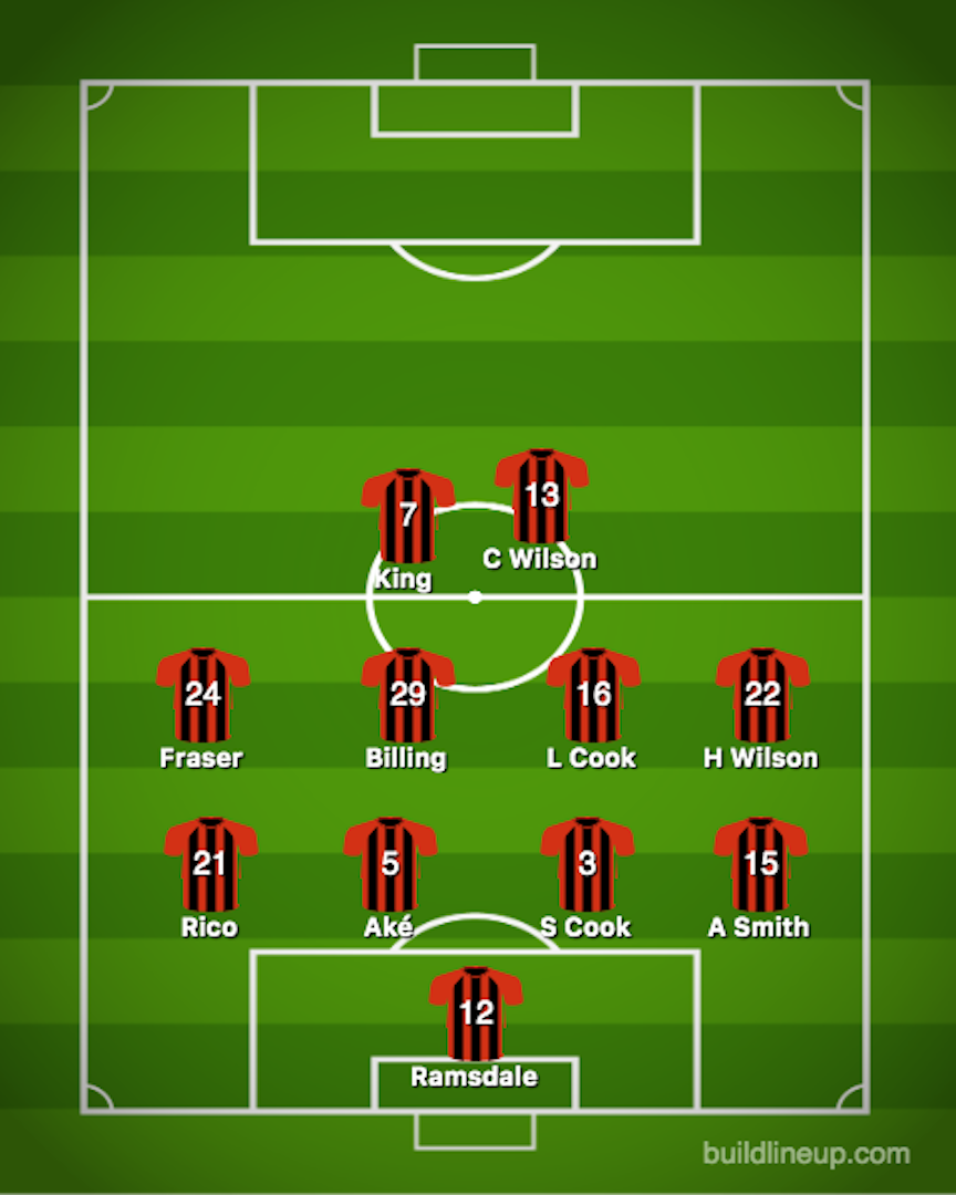 AFCB Subs: Boruc, Mepham, Francis, Stacey, Gosling, Danjuma, Solanke