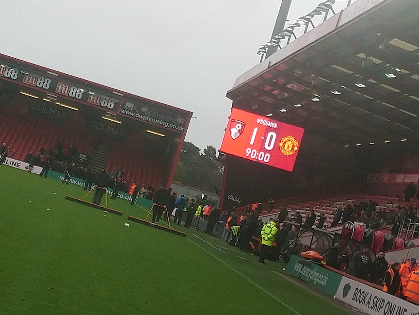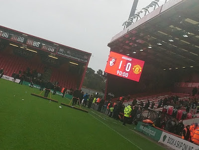 The Minute of silence before the game was perfectly observed.Looking at the league table today, it is Man United that will be feeling that they didn't perform and not the Bournemouth players. The Cherries needed a big win over a so-called top six team and they may have only nicked it 1-0, but the players beat Man United all over the pitch in winning tackles and making it difficult for them to play their game.