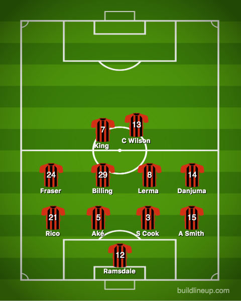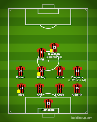 Ramsdale 8, A Smith 6, S Cook 8, Aké 7, Rico 7, Danjuma 6, Lerma 6, Billing 6, Fraser 6, C Wilson 6, King 6