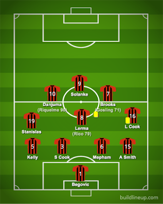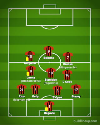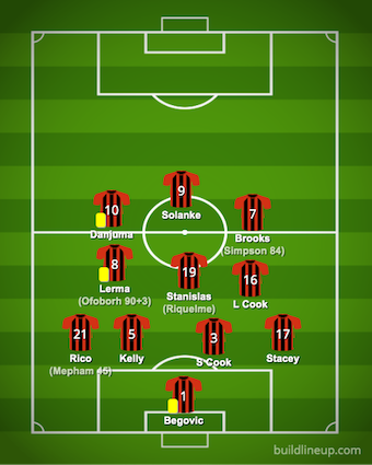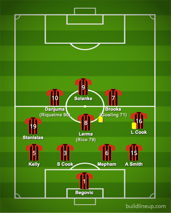 Begovic 8, Stacey 7, S Cook 7, Kelly 8, Rico 6, Brooks 8, Lerma 6, Stanislas 5, L Cook 7, Danjuma 8, Solanke 7