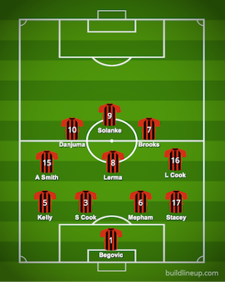 The player that is more of a miss for me is Jack Stacey. Adam Smith did well enough in the last game as cover and I don't see any changes coming in the back four. David Brooks was looking a bit more of a doubt, having put everything into the game against Nottingham Forest and I wouldn't be surprised if he was given a place to rest on the bench. If so, I'd like to see Riquelme get a start.