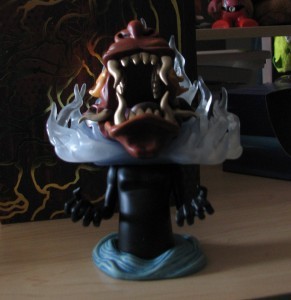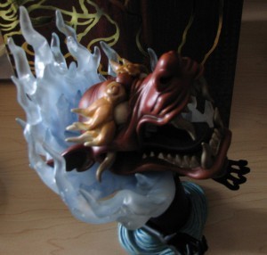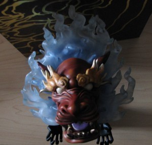 Enter “Screaming for Sunrise.” I can’t really call this a toy. It’s more like a vinyl sculpture and it was modeled after the original painting by the same name, Screaming for Sunrise. Produced by Munky King, when I opened the box I was in total shock. My dragon is gorgeous! Yay! You know I’m impressed when I sit here trying to figure out how the artist Yoskay Yamamoto designed, produced and painted this.