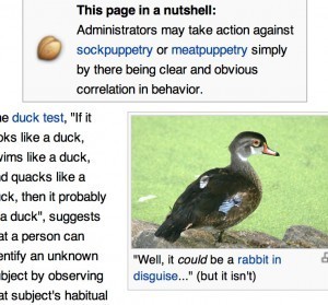 On Wednesday a formal proposal appeared for discussion: “Propose merging Category:American women novelists to Category:American novelists.” Nominator’s rationale: “As per gender neutrality guidelines, gender-specific categories are not appropriate where gender is not specifically related to the topic. This subcategory also creates the unfortunate side effect that Category:American novelists contains only male novelists.” Many users quickly posted comments agreeing. One user “struck out” two of these votes, on the ground that they appeared to have been submitted by “sock puppets”—new identities created by an existing user for purposes of deception—or at least by people who had created new Wikipedia accounts specifically for the purpose. Yet another user objected to the striking out of the votes: