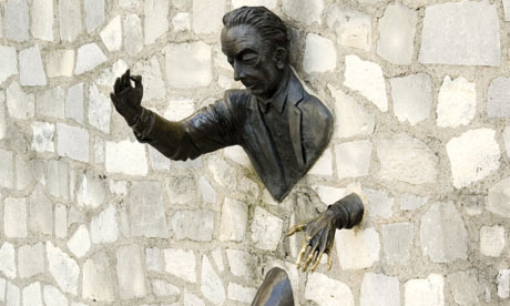 I stumbled onto Aymé not via Twitter nor word of mouth nor any of the Intertubes but browsing in a bookstore, the kind with tables, on which were displayed neat stacks of books lovingly chosen by the staff. I picked up a collection titled The Man Who Walked through Walls, put out by an independent London publisher, the Pushkin Press. The beautiful translation is by Sophie Lewis.